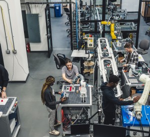 une véritable sous-station électrique industrielle et de l’équipement industriel à la fine pointe : moteurs et démarreurs électroniques 208 volts, 460 volts et 600 volts triphasés, onduleur/redresseur 208V triphasés, procédés industriels réels, robots industriels